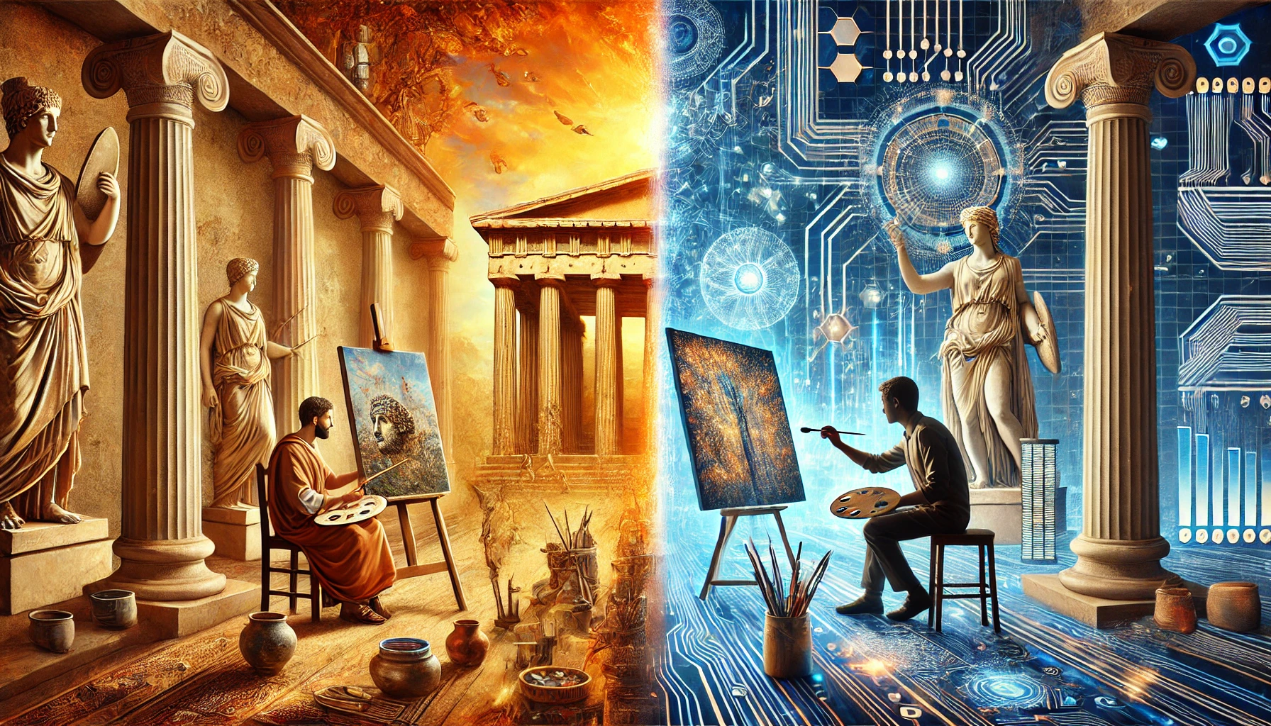 Τα τελευταία χρόνια, η τεχνητή νοημοσύνη (AI) έχει διεισδύσει δυναμικά στον κόσμο της τέχνης, προκαλώντας έντονο προβληματισμό αλλά και ενθουσιασμό στους καλλιτέχνες. Στην Ελλάδα, όπου η πολιτιστική κληρονομιά αποτελεί πυρήνα της ταυτότητας, η συζήτηση για τη σχέση τέχνης και AI αποκτά ιδιαίτερο ενδιαφέρον. Οι δημιουργοί, είτε εργάζονται με ψηφιακά μέσα είτε με παραδοσιακές τεχνικές, αρχίζουν να εξερευνούν τα νέα εργαλεία που προσφέρει η τεχνολογία, αναζητώντας τρόπους να ενσωματώσουν ή να αμφισβητήσουν τη χρήση τους.