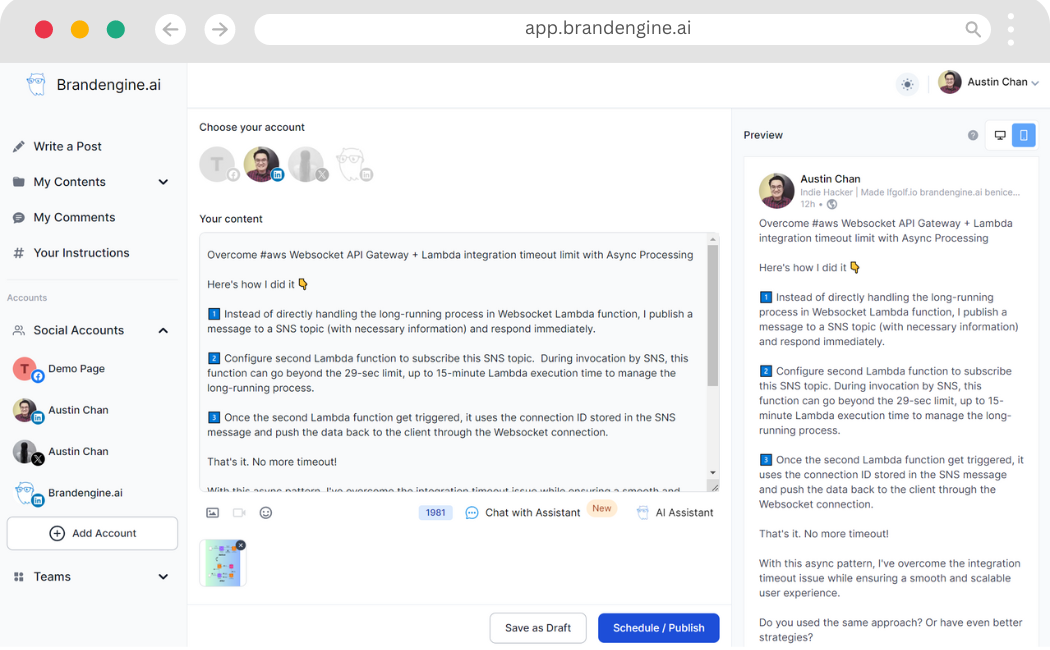 Η δυνατότητα προγραμματισμού και δημοσίευσης περιεχομένου στο LinkedIn μπορεί να σας βοηθήσει να παραμείνετε συνεπείς και να εξοικονομήσετε χρόνο. Με την προγραμματισμένη ανάρτηση περιεχομένου σε πολλαπλούς λογαριασμούς, μπορείτε να φτάσετε στο κοινό σας τη στιγμή που έχει τη μεγαλύτερη σημασία. Η συνέπεια είναι το κλειδί για την οικοδόμηση μιας ισχυρής παρουσίας στο LinkedIn, και με τα κατάλληλα εργαλεία, μπορείτε να διαχειριστείτε το χρονοδιάγραμμά σας αποτελεσματικά, διασφαλίζοντας ότι το μήνυμά σας φτάνει στο κοινό σας με τον σωστό τρόπο.