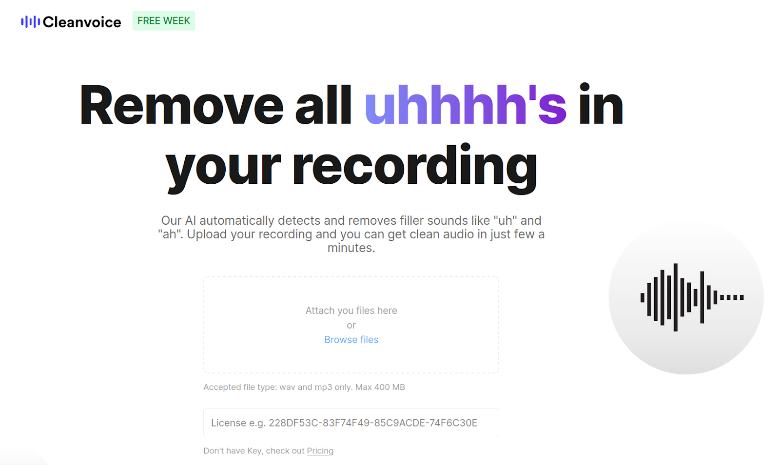 Το Cleanvoice είναι μια τεχνητή νοημοσύνη που αφαιρεί ήχους πλήρωσης, θόρυβο φόντου και ήχους στόματος από το podcast ή την εγγραφή ήχου σας.Διατίθεται στην αγορά ως εργαλείο εξοικονόμησης χρόνου για podcasters, μηχανικούς ήχου και καλλιτέχνες φωνής.