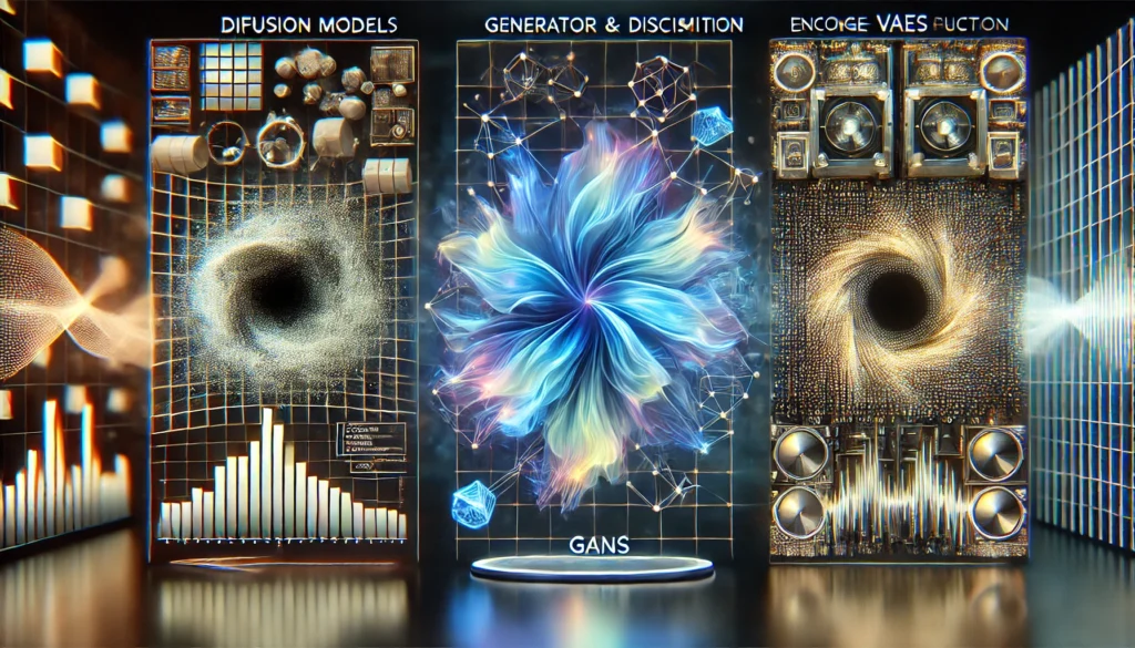 Τα VAEs (Διαφοροποιητικοί Αυτόματοι Κωδικοποιητές) είναι μια παλιότερη τεχνική που χρησιμοποιείται για συμπίεση και αναδημιουργία εικόνων. Αν και είναι εξαιρετικά χρήσιμα για την κατανόηση των δεδομένων, δεν είναι τόσο ισχυρά όσο τα diffusion models για τη δημιουργία υψηλής ποιότητας εικόνων.