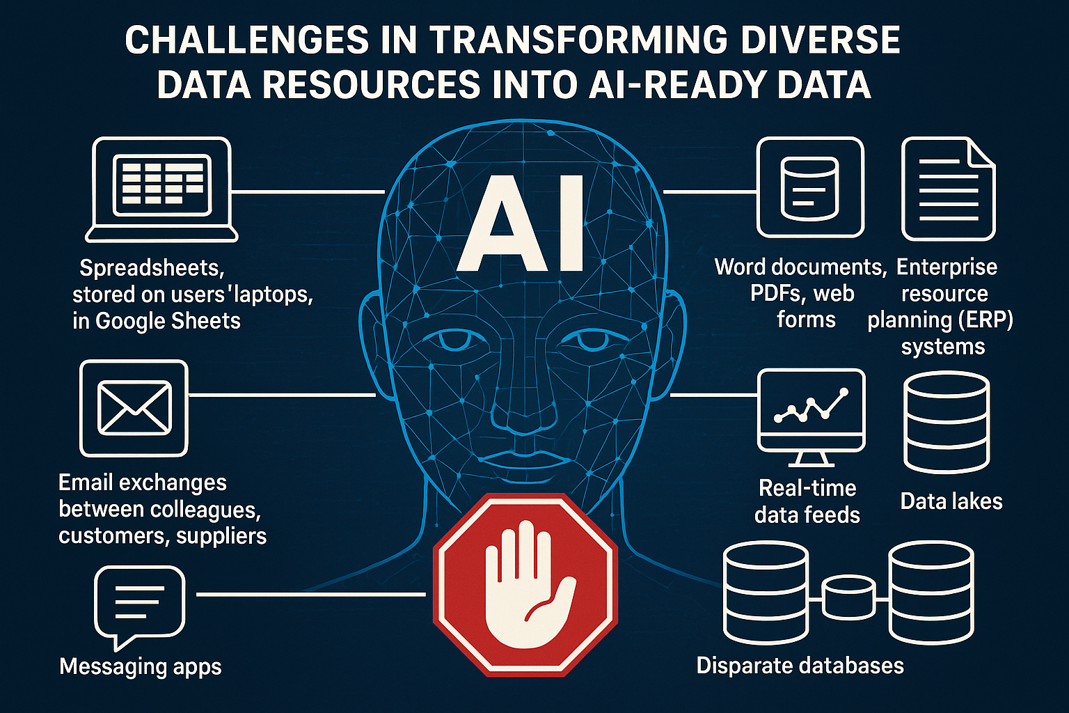 Αυτό που χρειάζονται τα Μεγάλα Δεδομένα και οι εφαρμογές AI είναι η ενοποίηση όλων αυτών των στοιχείων με τέτοιο τρόπο ώστε ένας αλγόριθμος υπολογιστή να μπορεί να τα κατανοήσει. Το 2024, ο τεχνολογικός γίγαντας Gartner τοποθέτησε τα AI-Ready Data στην ανοδική καμπύλη του κύκλου υπερβολής για την τεχνητή νοημοσύνη, εκτιμώντας ότι θα χρειαστούν 2-5 χρόνια πριν φτάσουν στο “πλατό της παραγωγικότητας”. Δεδομένου ότι τα συστήματα AI εξορύσσουν και εξάγουν δεδομένα, οι περισσότερες οργανώσεις -εκτός από τις πολύ μεγάλες- δεν διαθέτουν τα θεμέλια για να χτίσουν, και ενδέχεται να μην έχουν βοήθεια από την AI για την προσπάθεια αυτή για άλλα 1-4 χρόνια.