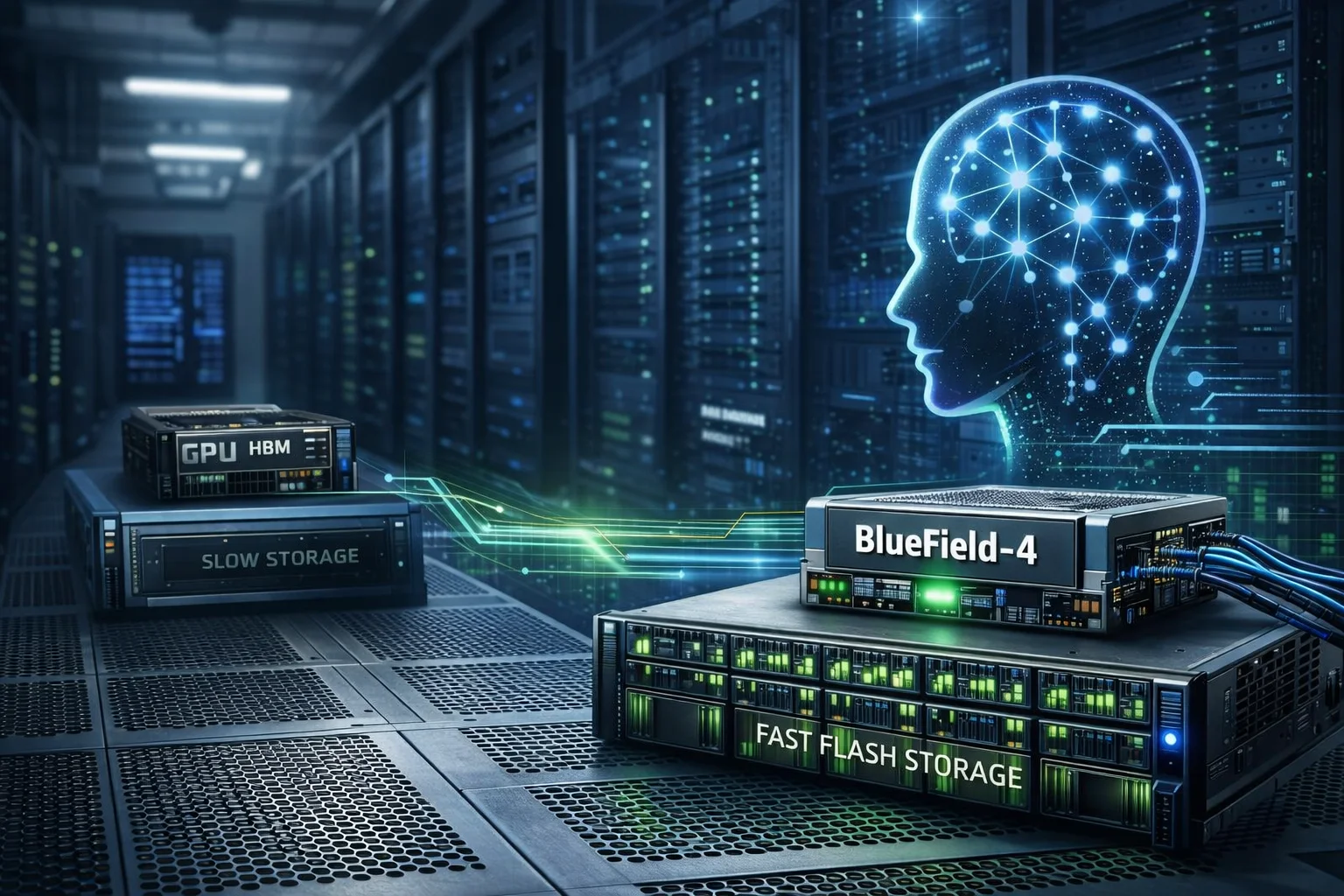 Η βιομηχανική απάντηση περιλαμβάνει την εισαγωγή ενός ειδικά κατασκευασμένου επιπέδου στην ιεραρχία αυτή. Η πλατφόρμα ICMS καθιερώνει ένα επίπεδο “G3.5” — ένα επίπεδο flash συνδεδεμένο με Ethernet, σχεδιασμένο ρητά για γιγαντιαίας κλίμακας πρόβλεψη. Αυτή η προσέγγιση ενσωματώνει την αποθήκευση απευθείας στην υπολογιστική μονάδα. Χρησιμοποιώντας τον επεξεργαστή δεδομένων NVIDIA BlueField-4, η πλατφόρμα αποφορτίζει τη διαχείριση αυτών των δεδομένων συμφραζομένων από το κεντρικό CPU.