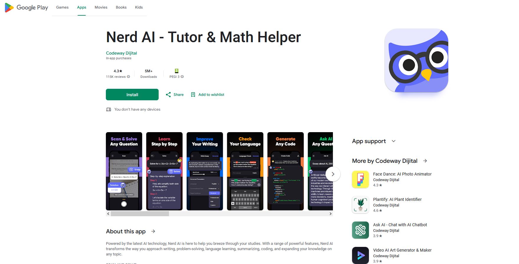 Νιώστε τη δύναμη του Nerd AI καθώς μεταμορφώνει τον τρόπο με τον οποίο γράφετε, μαθαίνετε γλώσσες, συνοψίζετε κείμενα, ξαναγράφετε περιεχόμενο και εμβαθύνετε στον κόσμο του προγραμματισμού. Κατεβάστε τώρα και ζήστε τη χαρά της απρόσκοπτης μάθησης και δημιουργικότητας!