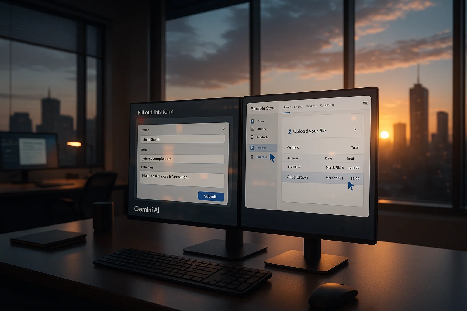 Το Gemini 2.5 αλλάζει το παιχνίδι: η νέα δυνατότητα τού επιτρέπει να “βλέπει” τη σελίδα όπως ο άνθρωπος, να καταλαβαίνει την οπτική διάταξη, και να χειρίζεται κουμπιά, πεδία και μενού μέσω φυσικών ενεργειών ποντικιού και πληκτρολογίου. Με αυτόν τον τρόπο, μπορεί να εκτελεί εργασίες όπως: