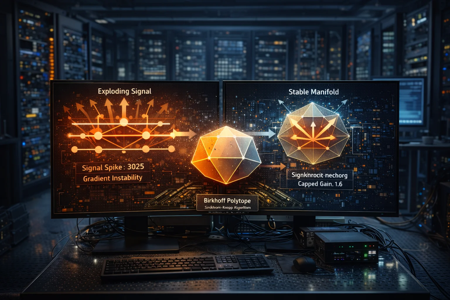 Σε λεπτομερές επίπεδο, το σύστημα χρησιμοποιεί τον αλγόριθμο Sinkhorn-Knopp για να εκτελέσει μια εντροπική προβολή του υπολειμματικού πίνακα. Αυτή η διαδικασία χαρτογραφεί τα δεδομένα στο πολύεδρο Birkhoff, μια γεωμετρική αναπαράσταση πιθανών σταθερών καταστάσεων. Με την αναγκαστική μετατροπή των υπολειμματικών πινάκων σύνδεσης σε “διπλά στοχαστικούς”, η αρχιτεκτονική ουσιαστικά τους κλειδώνει μέσα σε ένα σταθερό πολλαπλό, αποτρέποντας τη χαοτική διακύμανση που οδηγεί σε αποτυχίες κατά την εκπαίδευση.